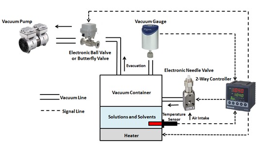Abstract: Aiming at the problems of precision vacuum control to reduce solvent loss in evaporation and concentration process, this article focuses on vacuum evaporation techniques, including the precise control method of vacuum degree, the simultaneous control method of vacuum degree and temperature, and the use of strong resistance of the corrosive electronic valve acts as a vacuum regulator.
