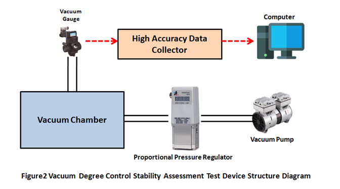 In order to assess the performance indicators of the KaoLu's Electronic Vacuum Regulator, the assessment test device built is shown in Figure 2, which mainly includes a vacuum pump, a vacuum chamber, a capacitance vacuum gauge, a high-precision data collector and a computer. In order to accurately measure the vacuum adjustment range and the stability of control, each component in assessment test device has some characteristics: