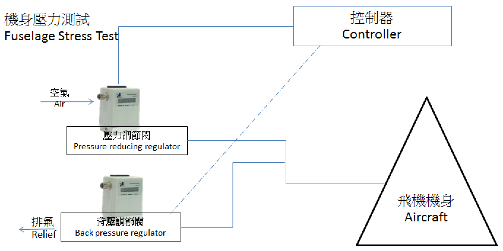 In aircraft manufacturing, most components need to be tested for stress they would encounter during flight. Here we used a combination of QKL electronic pressure regulator with pressure reducing regulator and a QKL with back pressure regulator allows for high speed fill and relief. As the volume of container after the valve is large, we would recommend to use a volume booster in combination to increase the response time. We have been expert in providing customised solution to aerospace and military application, please consult for customised solutions.
