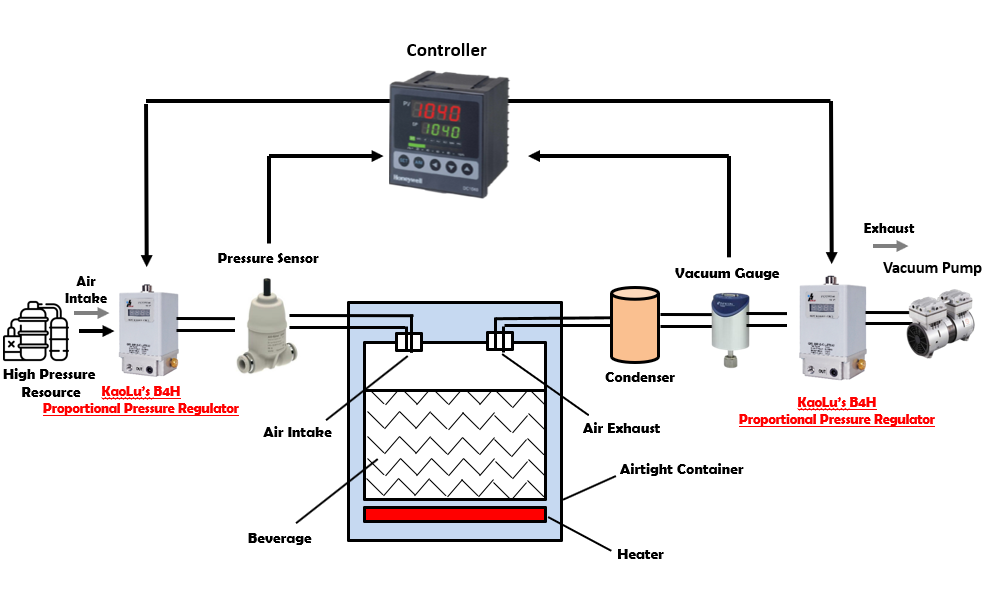 커피 및 차 음료의 질소 냉추출 과정에서 진공 압력 제어 솔루션