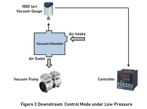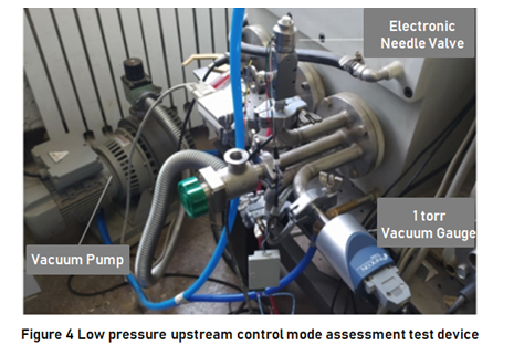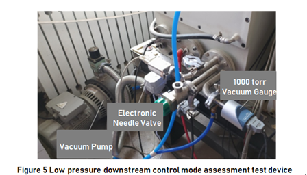 (4) The control mode adopts upstream mode and downstream mode respectively. Upstream mode is used to control air pressure below 10torr, and downstream mode is used to control air pressure in the range of 10~760torr using KaoLu electric needle valve (https://www.genndih.com/proportional-flow-control-valve.htm)
