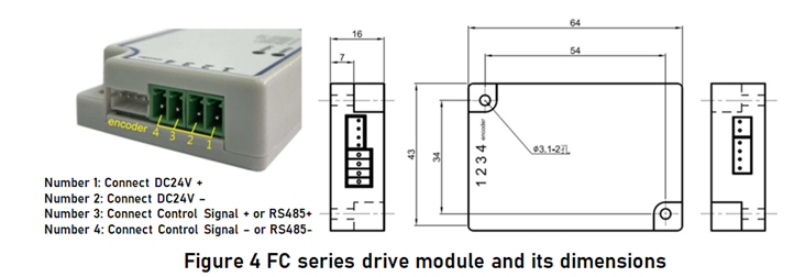 FC series high flow proportional valve is equipped with a stepper motor drive circuit module, which provides the required power supply and control signal for FC high flow proportional valve, and converts the DC signal into step control of bipolar stepper motor, and can also provide RS485 direct control of serial communication. Its specifications and dimensions are shown in Figure 4.